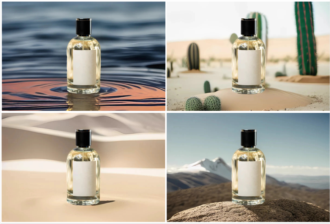 比如我想给香水换一个商品背景图,抠图完成后,在输入框中输入【深蓝色高级感背景】,AI就能瞬间帮我生成一个新的背景图,做电商的小伙伴们可以来试试,以后产出商品图的时间、人力成本都会大大降低了!