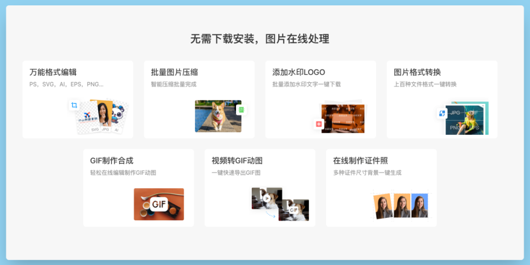 无论工作学习,还是生活当中,我们总要处理各种各样的图片,比如对图片进行裁剪、抠图、制作电子证件照、图片格式转换、图片去水印等等。虽然这些操作听上去并不复杂,但如果没有时间学习PS,又没有一款称心如意的工具,处理起来还是比较费时费力的😥。