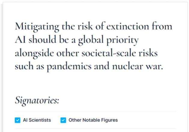 这项 22 字的倡议已得到了多位 AI 行业大佬的支持,超过 350 位 AI 领域高管和专家签署了这份声明。