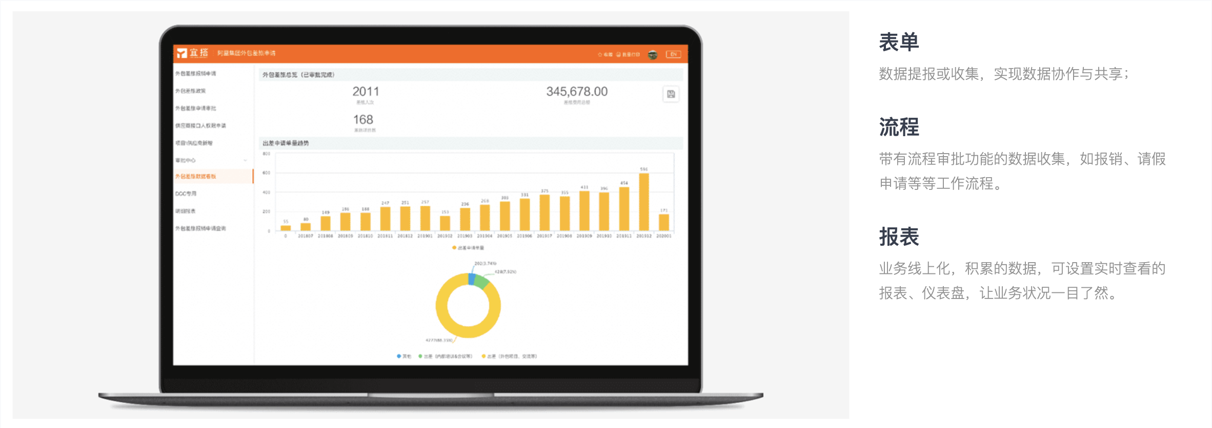 - 应用量身定制:通过表单、流程、数据能力搭建更贴合业务需求的应用,把身边每一件事数字化。