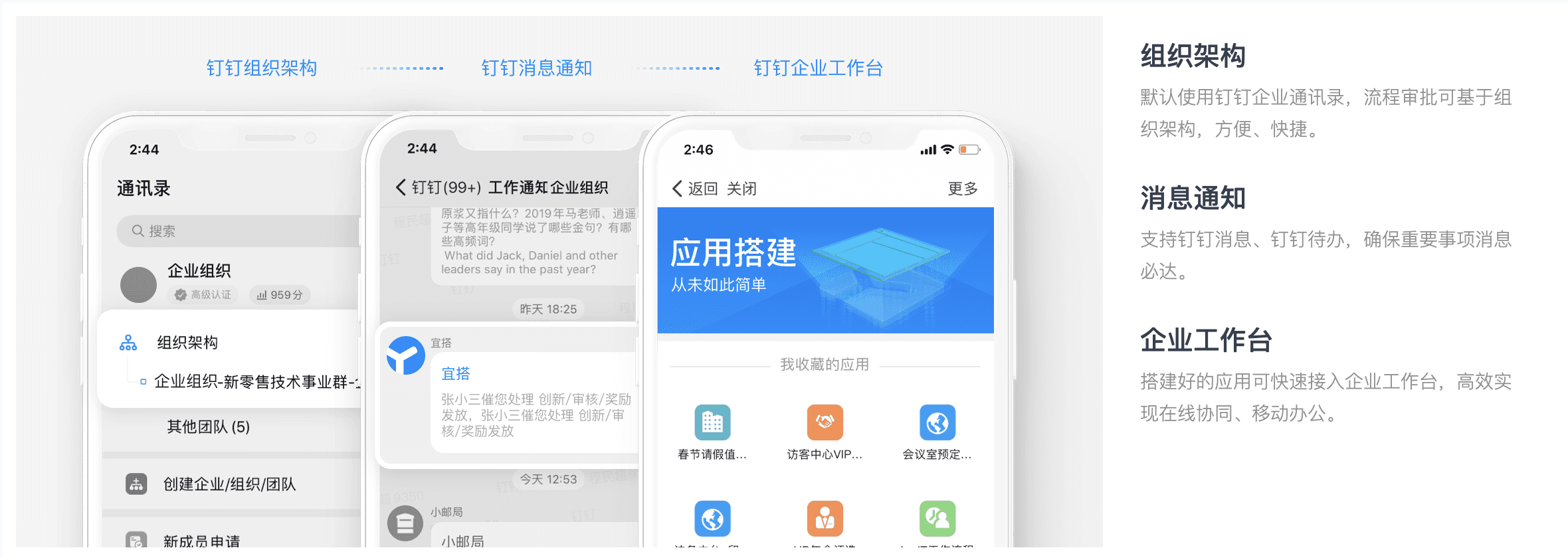- 多种打开路径(钉钉内置应用、浏览器网页登录),摆脱空间、设备限制,极大提高便利性。