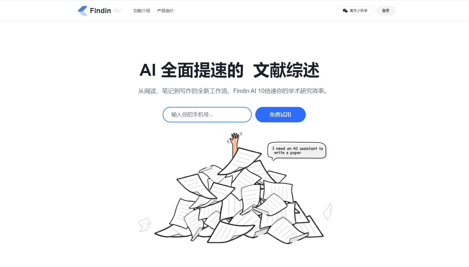 Findin.ai是一款通过人工智能技术全面提速学术研究工作流的工具。它通过文献筛选、论文阅读、笔记摘录、主题研究、文献综述和学术写作等功能,帮助用户高效管理文献和知识,提升研究效率。