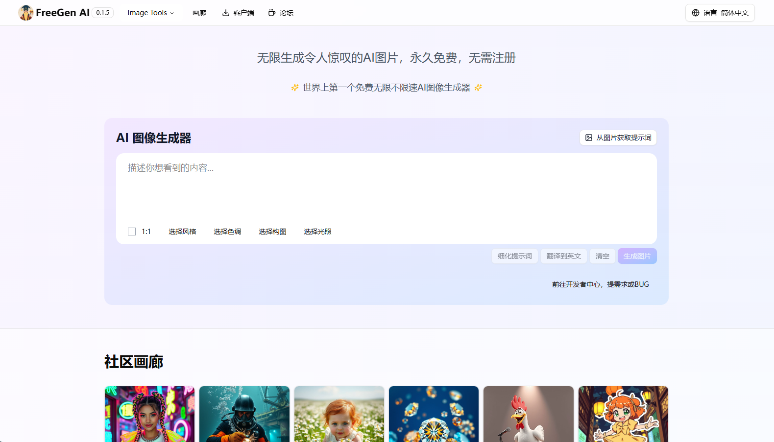 1、永久免费、无需注册、无限制生成AI图片